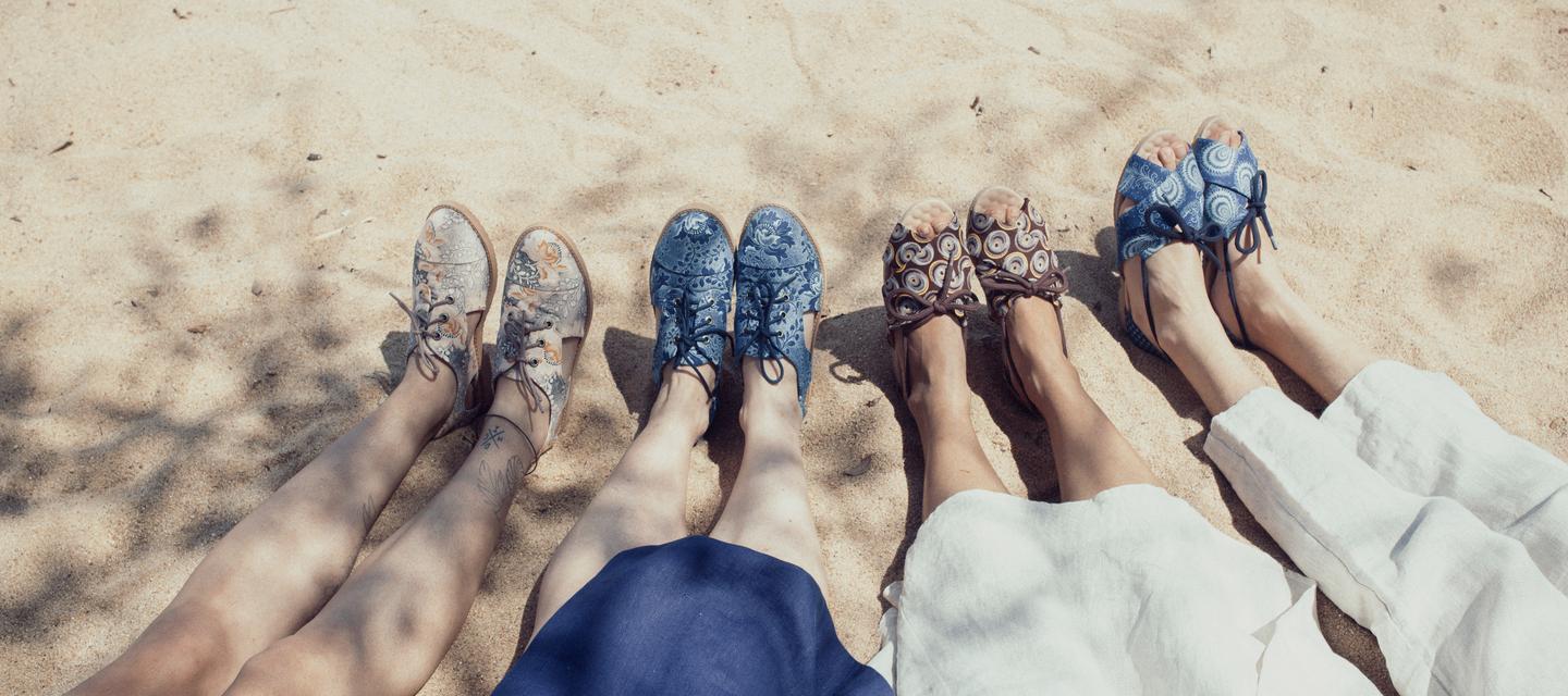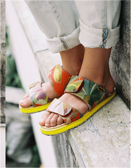 A Farm nos contou que estava repensando seus processos produtivos e nos convidou à ressignificar algumas peças paradas. Se o produto mais verde é aquele que já existe, por que não unir forças para que a nossa mensagem chegue a mais pessoas? Garimpamos peças e tecidos que sobraram de coleções passadas da Farm e transformamos tudo em sapato. É sandália feita de roupa!