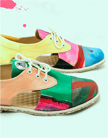 Feita de antigas obras experimentais do artista. Cuidadosamente cortadas e transformadas em sapatos, resultou em uma edição limitadíssima, onde nem o mesmo par de sapato era igual.