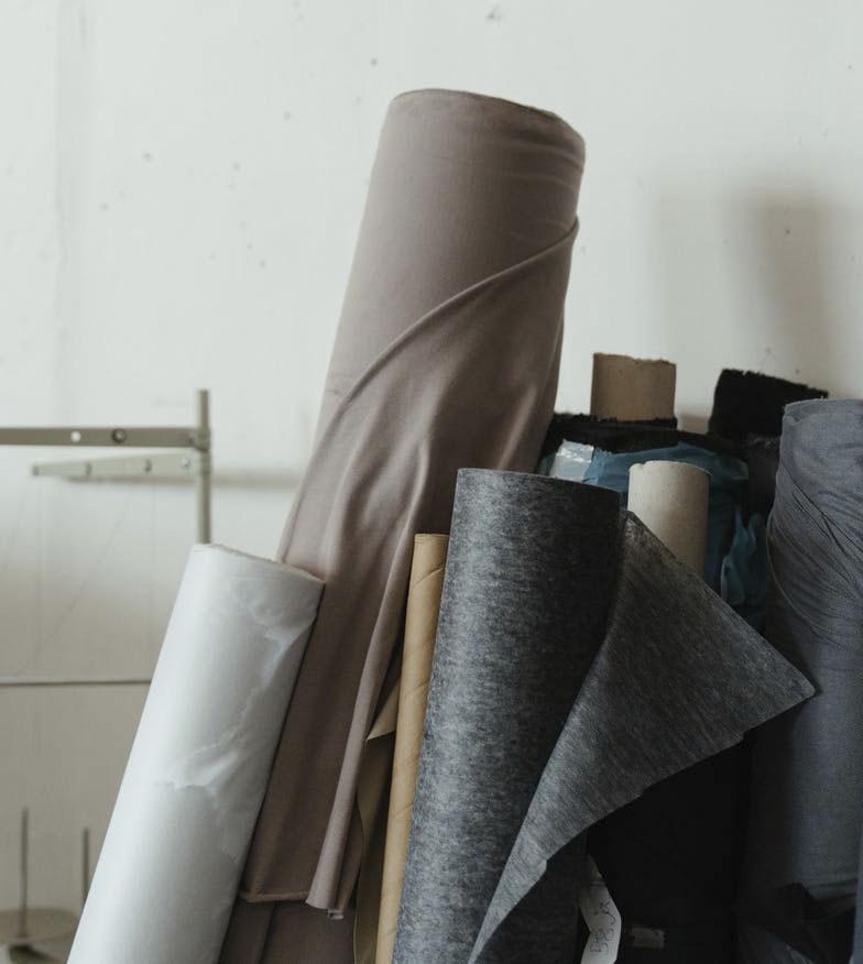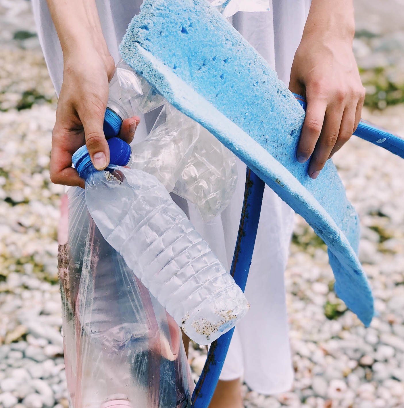 roupas de brechó, garrafa PET reciclada, algodão reciclado ou tecido de reuso.