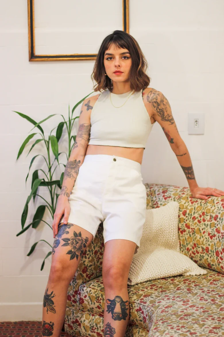 BRECHÓ INSECTA + CA ROCHA SHORTS CINTURA ALTA BRANCO - TAMANHO M