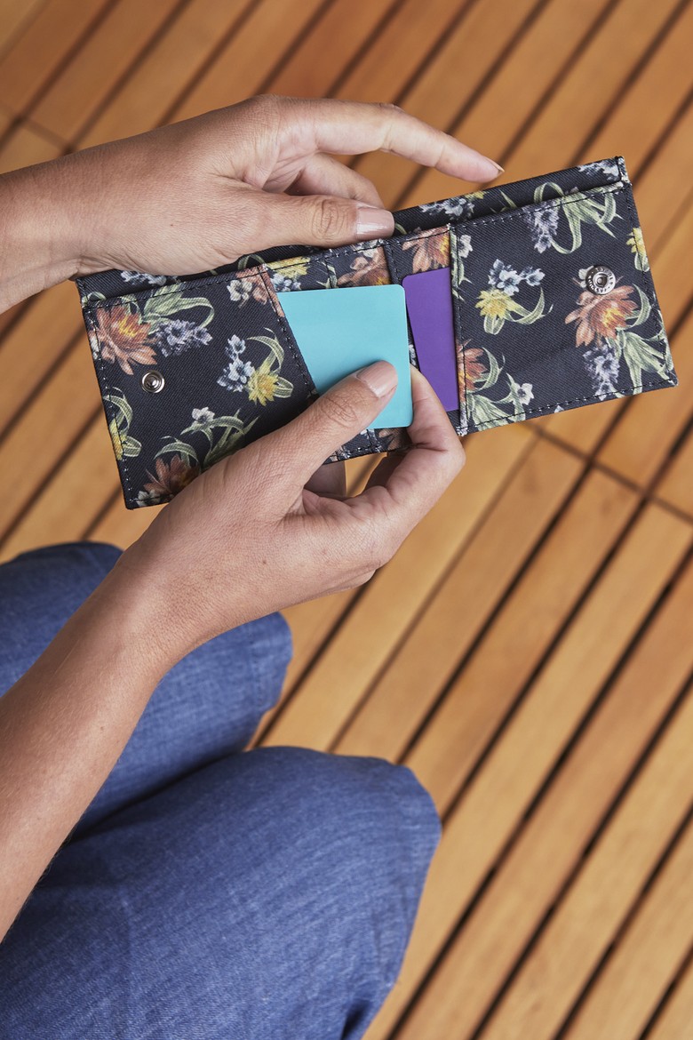 Agora você também pode ter uma carteira ecosexy!Carteira pequena com porta-cartões, bolso para notas e fecho em botão de pressão. Feitas com os mesmos tecidos de PET reciclado dos seus besouros preferidos, em retalhos de coleções passadas que estavam parados na fábrica.Medidas:9cm x 10,5cm (fechada)21cm x 10,5cm (aberta)