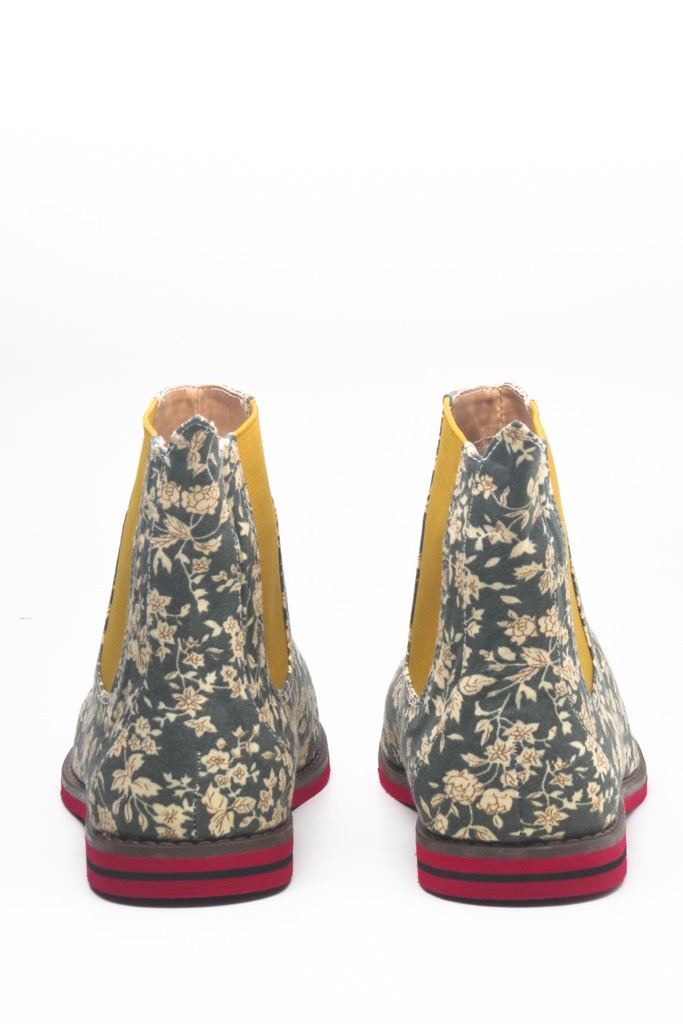 Bota vegana - sem uso de material com origem animal. Estilo chelsea, toda feita a partir da reutilização de roupas vintage. Elástico lateral, sola de borracha e forro de camurça sintética. Nossa palminha colméia acolchoada garante conforto extra!