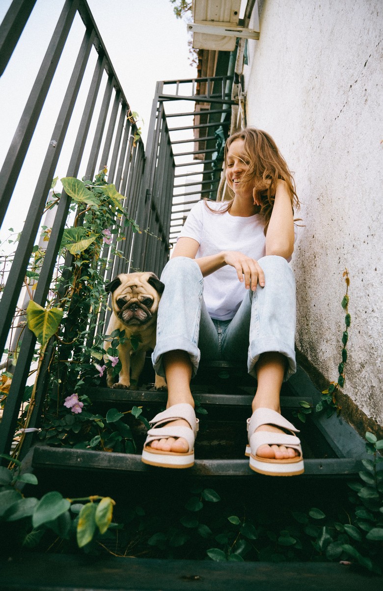 Meio sandália plataforma, meio chinelo. Tiras reguláveis com velcro, tira traseira removível. Estampa sucesso de nossa criação sublimada em tecido feito de garrafas PET recicladas.